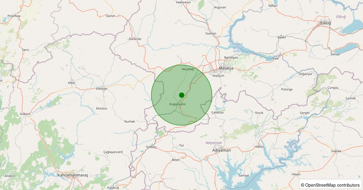 Son 7 gün içinde Doğanşehir - Polatdere noktasından 100 km yarıçap içerisinde meydana gelen diğer depremler: