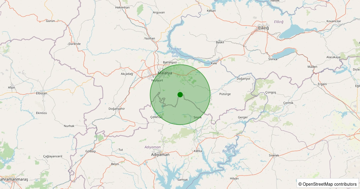 Son 7 gün içinde Battalgazi - Uluköy Köyü noktasından 100 km yarıçap içerisinde meydana gelen diğer depremler: