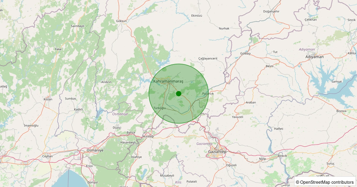 Son 7 gün içinde Dulkadiroğlu noktasından 100 km yarıçap içerisinde meydana gelen diğer depremler:
