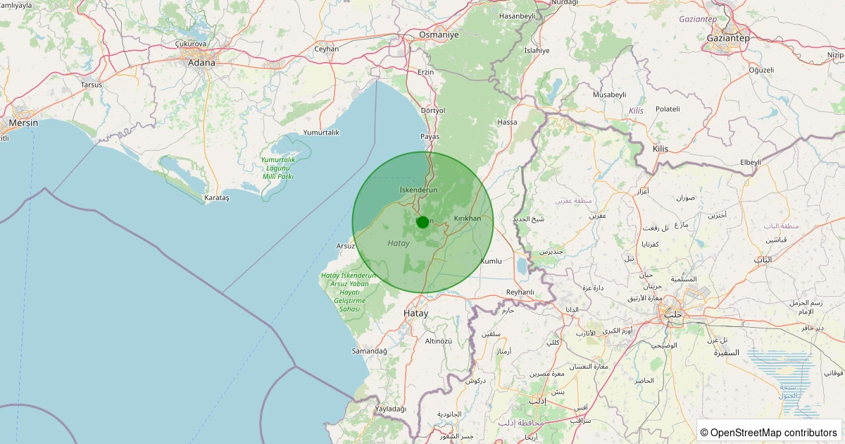 Son 7 gün içinde Belen noktasından 100 km yarıçap içerisinde meydana gelen diğer depremler: