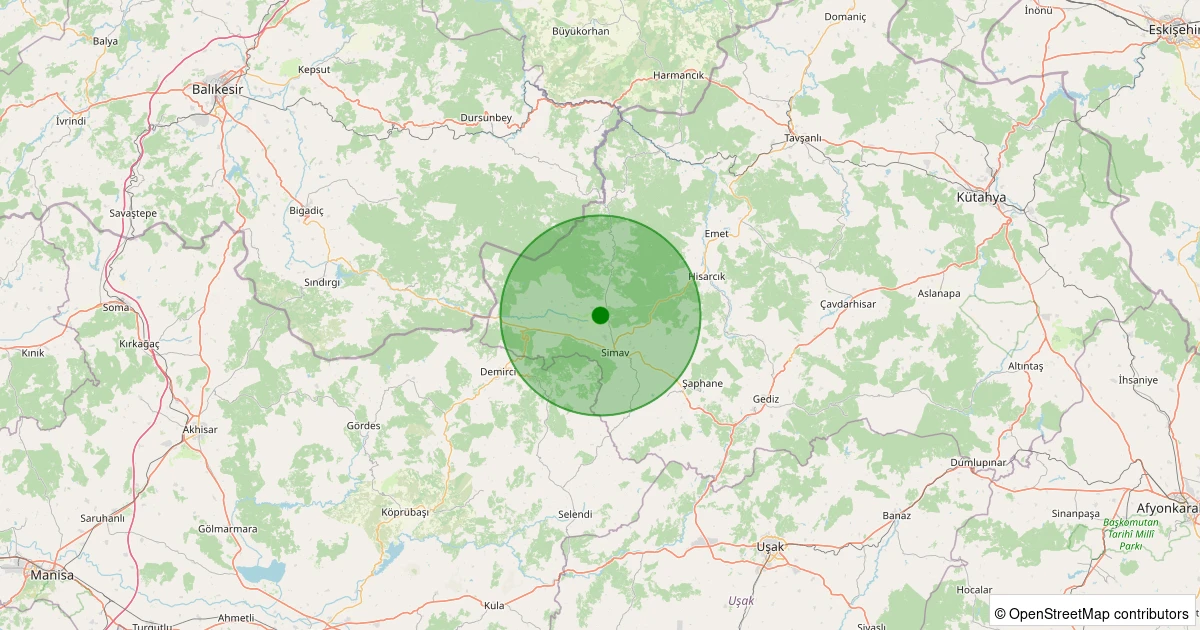 Son 7 gün içinde Simav - Naşa/Cumhuriyet noktasından 100 km yarıçap içerisinde meydana gelen diğer depremler: