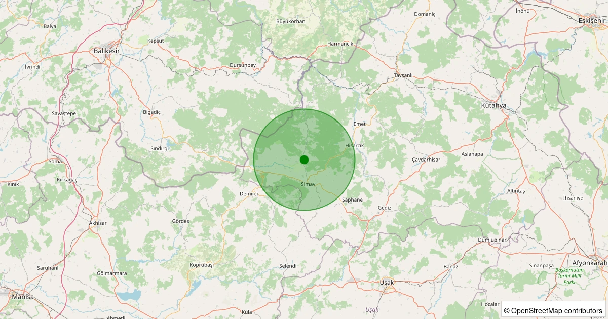 Son 7 gün içinde Simav - Hamzabey noktasından 100 km yarıçap içerisinde meydana gelen diğer depremler: