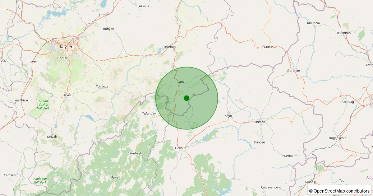 Son bir hafta içerisinde Kayseri şehri Sarız - Ördekli Köyü noktasından 100 km yarıçap içerisinde toplamda 109 deprem kaydedilmiştir. Bu depremlerden en büyüğü 2.8 büyüklüğünde ve en sığ odaklısı 0.60 kilometre derinlikte gerçekleşmiştir.
