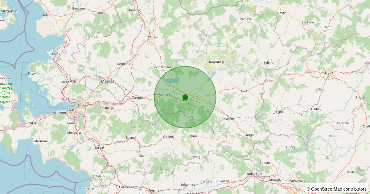 Son 7 gün içinde Salihli - Keli noktasından 100 km yarıçap içerisinde meydana gelen diğer depremler: