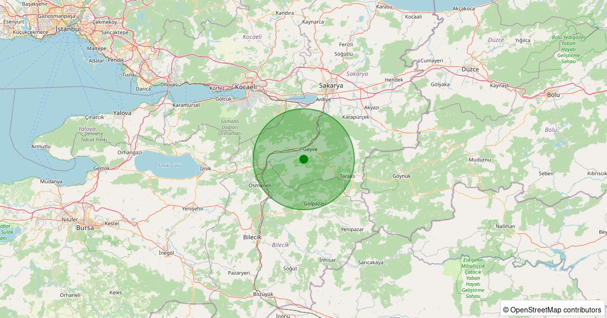 Son 7 gün içinde Geyve - Safibey noktasından 100 km yarıçap içerisinde meydana gelen diğer depremler: