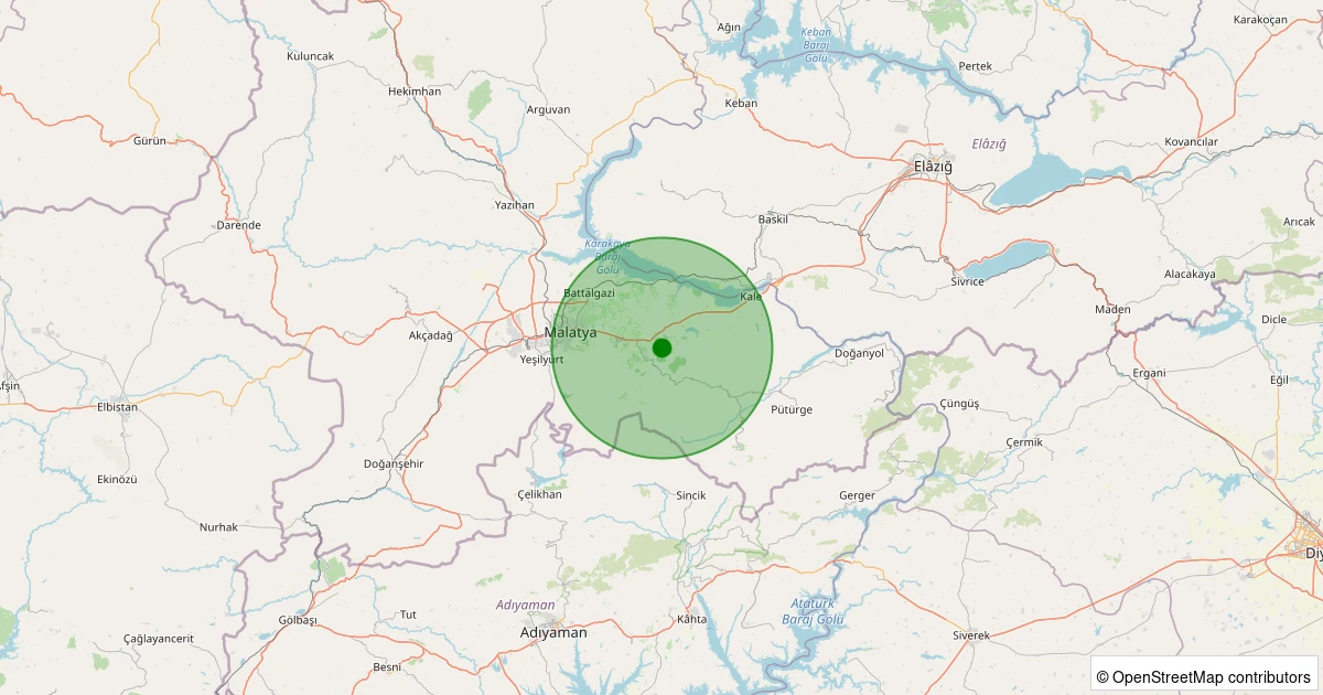 Son 7 gün içinde Battalgazi - Çolaklı Köyü noktasından 100 km yarıçap içerisinde meydana gelen diğer depremler: