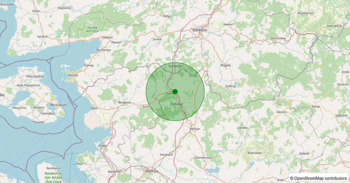 Son 7 gün içinde Soma - Yırca noktasından 100 km yarıçap içerisinde meydana gelen diğer depremler: