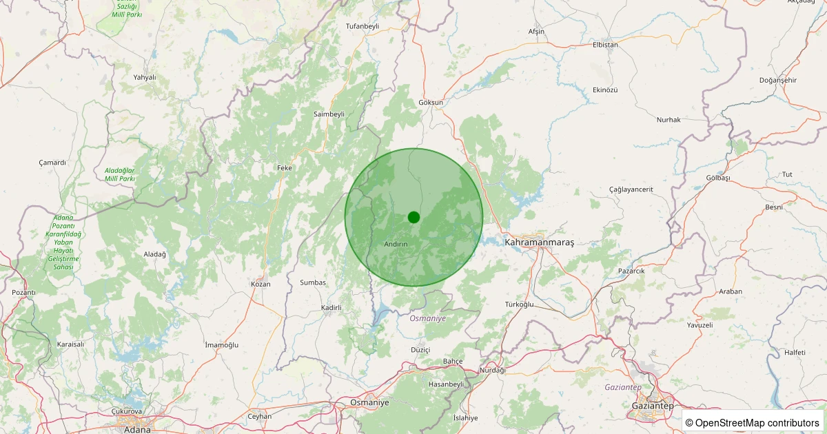 Son 7 gün içinde Andırın - Yeşiltepe Köyü noktasından 100 km yarıçap içerisinde meydana gelen diğer depremler: