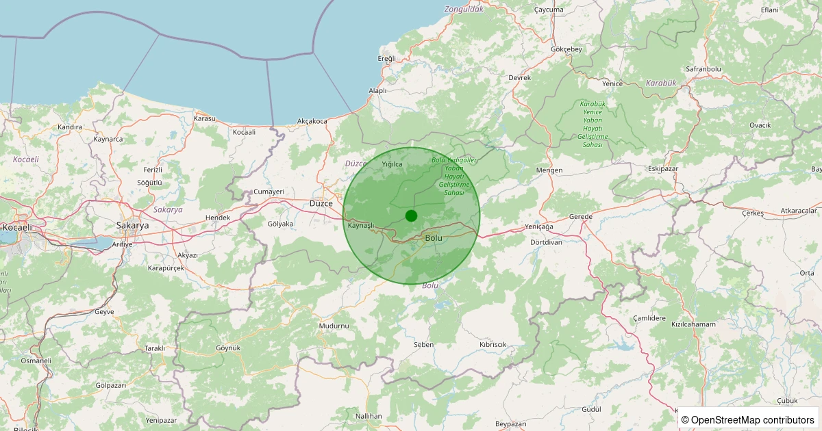 Son 7 gün içinde Yığılca - Hacıyeri Köyü noktasından 100 km yarıçap içerisinde meydana gelen diğer depremler: