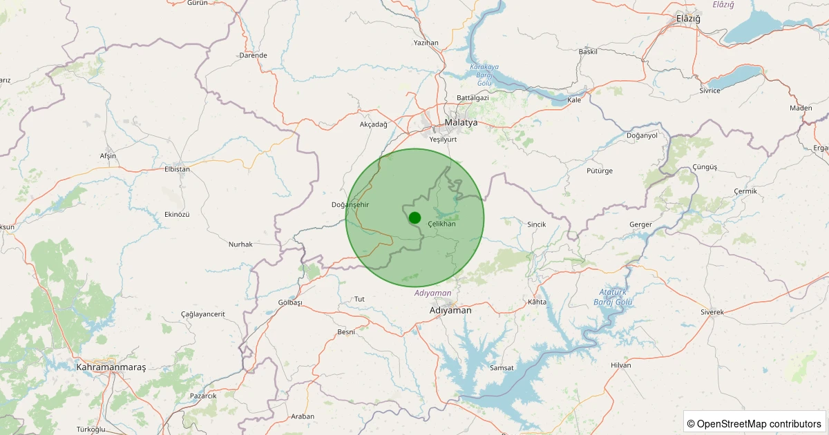 Son 7 gün içinde Çelikhan - Pınarbaşı/Çamlıyayla noktasından 100 km yarıçap içerisinde meydana gelen diğer depremler: