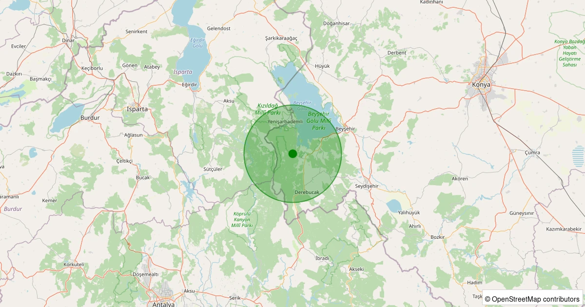 Son 7 gün içinde Beyşehir - Yeşildağ/Cemeller noktasından 100 km yarıçap içerisinde meydana gelen diğer depremler: