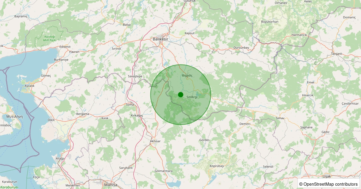 Son 7 gün içinde Sındırgı - Alacaatlı noktasından 100 km yarıçap içerisinde meydana gelen diğer depremler: