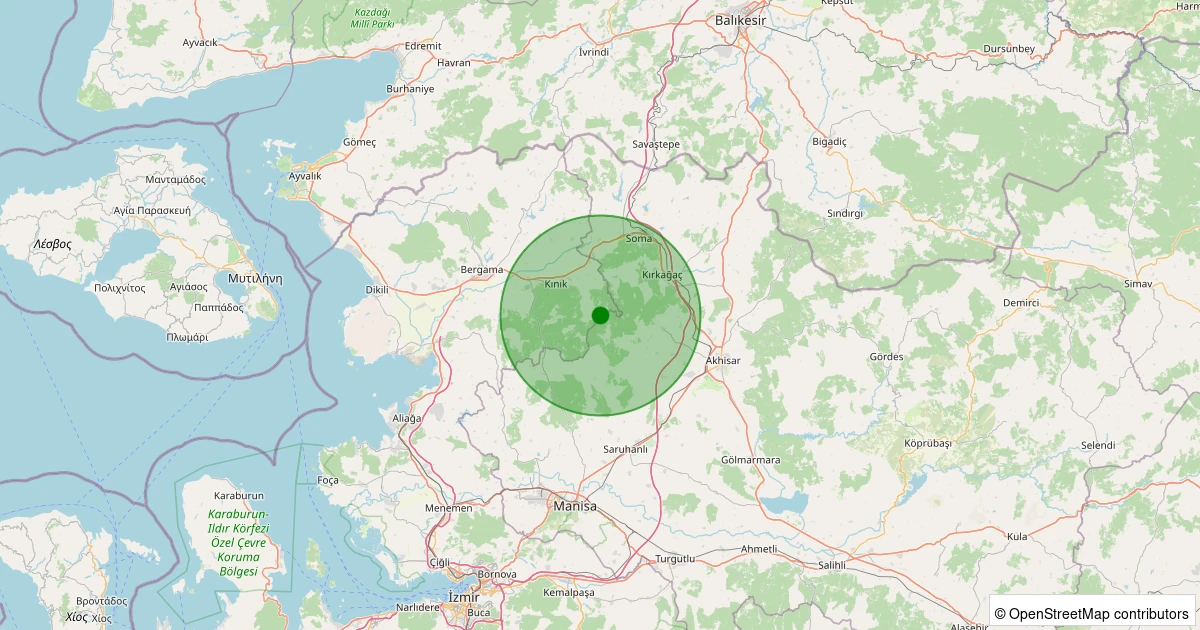 Son 7 gün içinde Kınık - Elmadere noktasından 100 km yarıçap içerisinde meydana gelen diğer depremler: