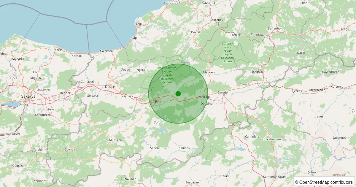 Son bir hafta içerisinde Bolu şehri Merkez noktasından 100 km yarıçap içerisinde toplamda 47 deprem kaydedilmiştir. Bu depremlerden en büyüğü 2.6 büyüklüğünde ve en sığ odaklısı 4.50 kilometre derinlikte gerçekleşmiştir.
