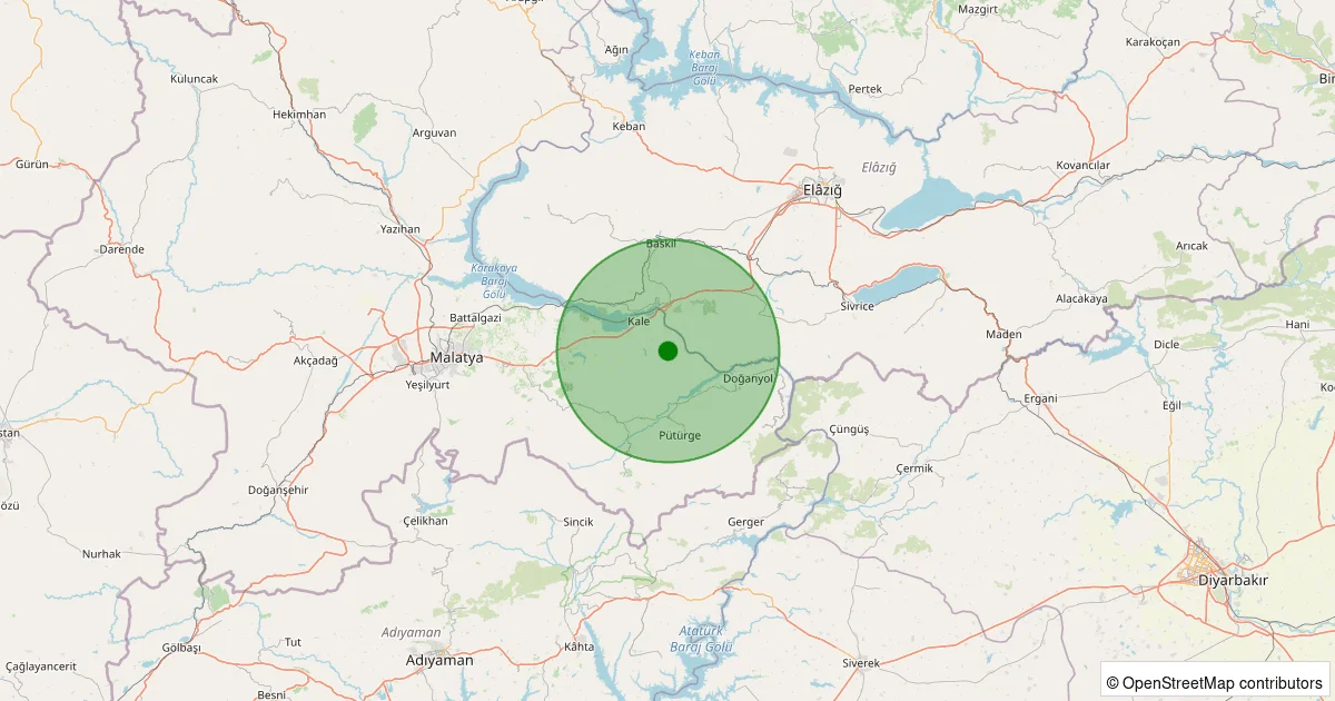 Son bir hafta içerisinde Malatya şehri Kale noktasından 100 km yarıçap içerisinde toplamda 213 deprem kaydedilmiştir. Bu depremlerden en büyüğü 3.7 büyüklüğünde ve en sığ odaklısı 0.00 kilometre derinlikte gerçekleşmiştir.