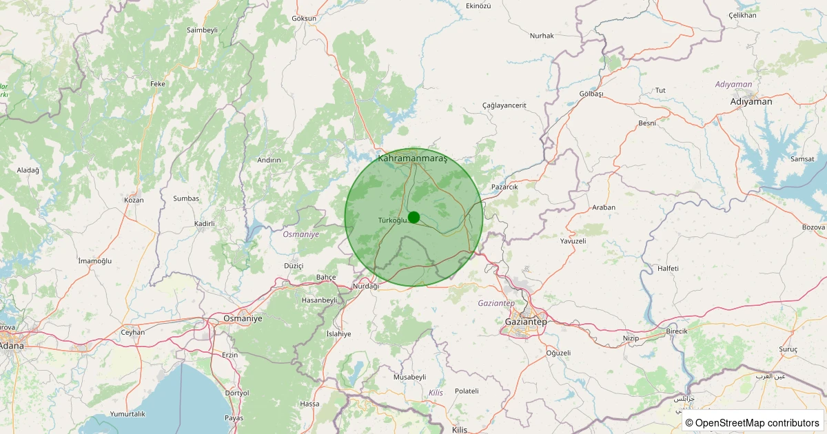 Son 7 gün içinde Türkoğlu - Çobantepe noktasından 100 km yarıçap içerisinde meydana gelen diğer depremler: