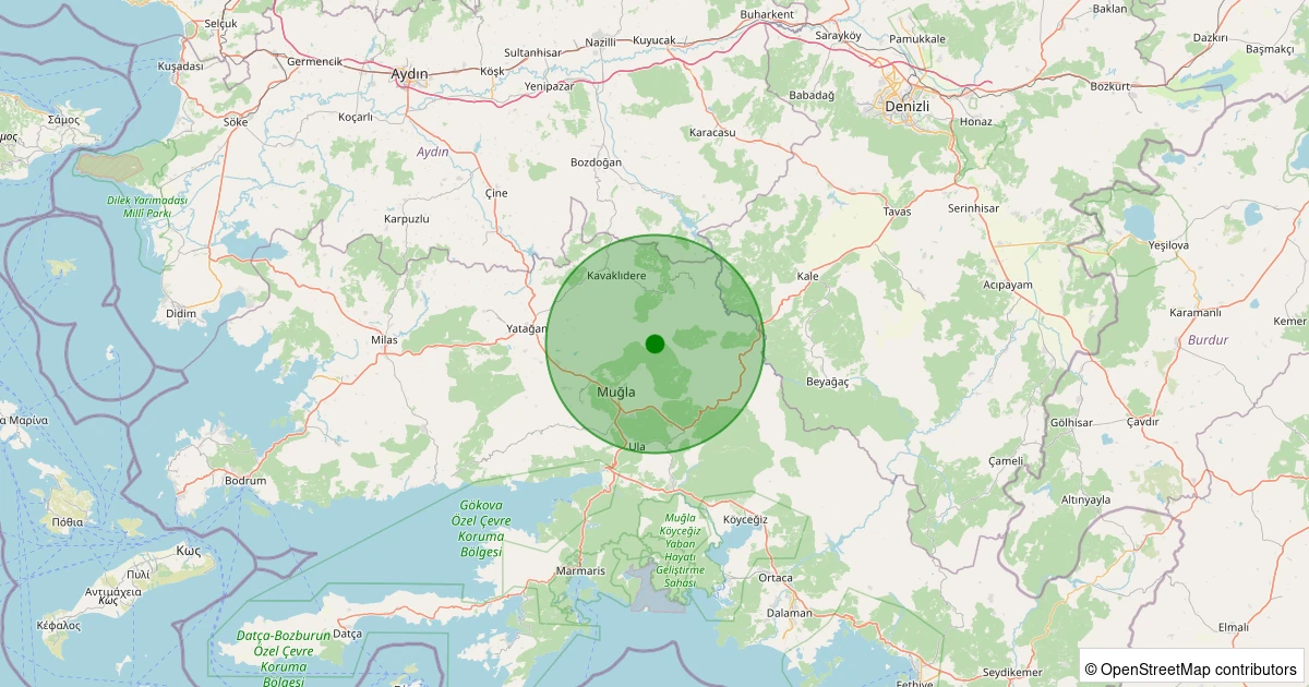 Son 7 gün içinde Menteşe - Özlüce noktasından 100 km yarıçap içerisinde meydana gelen diğer depremler:
