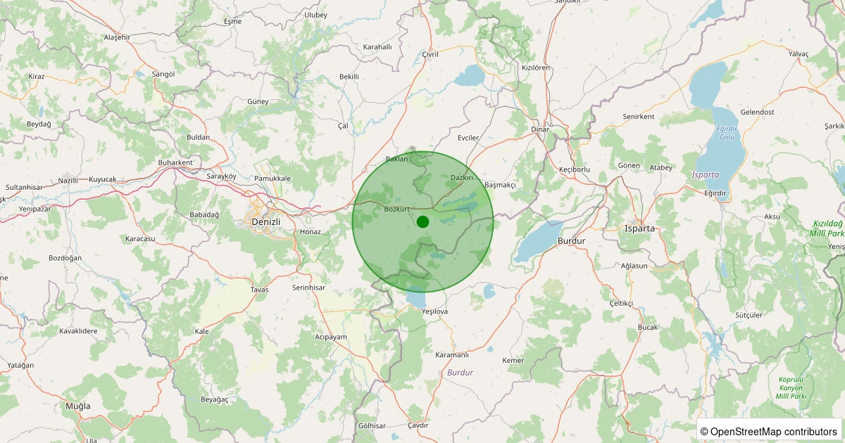 Son 7 gün içinde Çardak - Hürriyet noktasından 100 km yarıçap içerisinde meydana gelen diğer depremler: