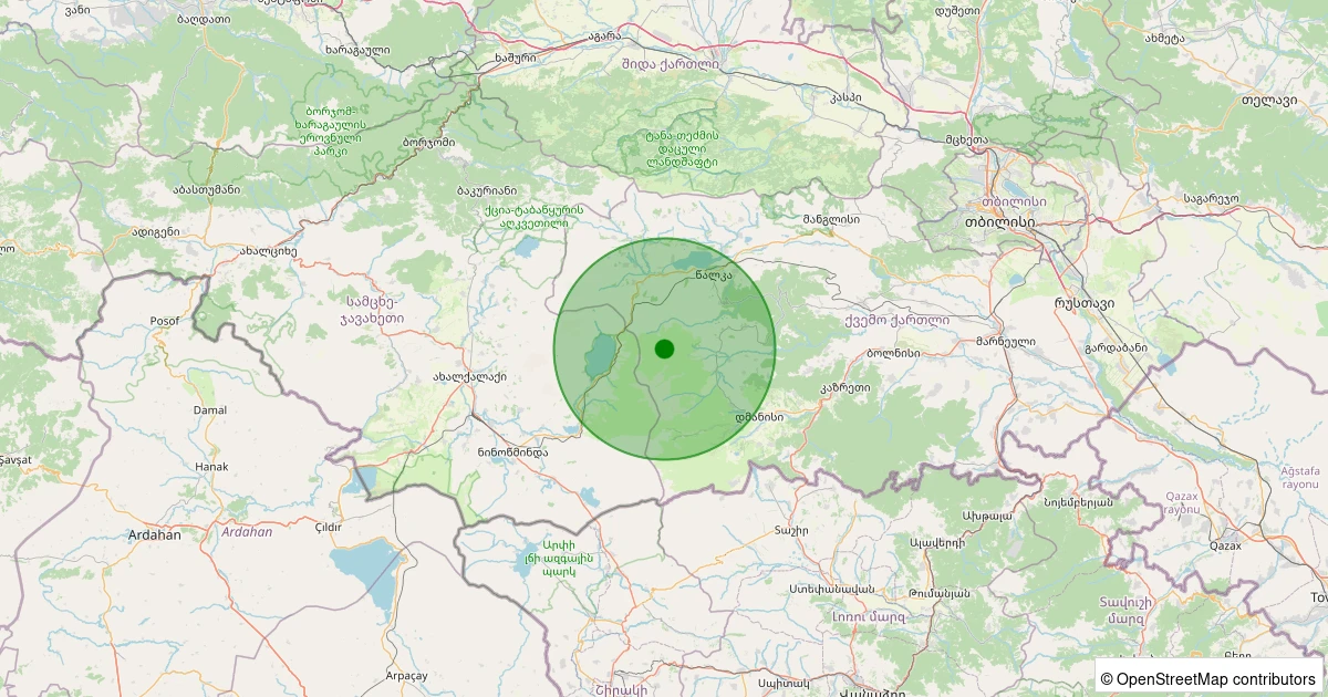 Son 7 gün içinde Dmanisi, Kvemo Kartli (Gürcistan) - [62.24 km] Akyaka (Kars) noktasından 100 km yarıçap içerisinde meydana gelen diğer depremler: