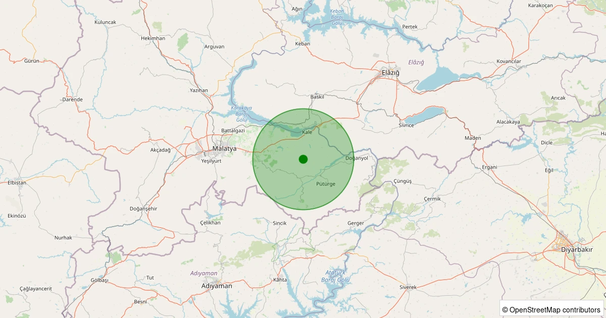 Son 7 gün içinde Pütürge - Pazarcık Köyü noktasından 100 km yarıçap içerisinde meydana gelen diğer depremler: