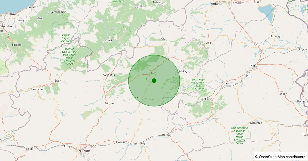 Son 7 gün içinde Oltu - Toprakkale noktasından 100 km yarıçap içerisinde meydana gelen diğer depremler: