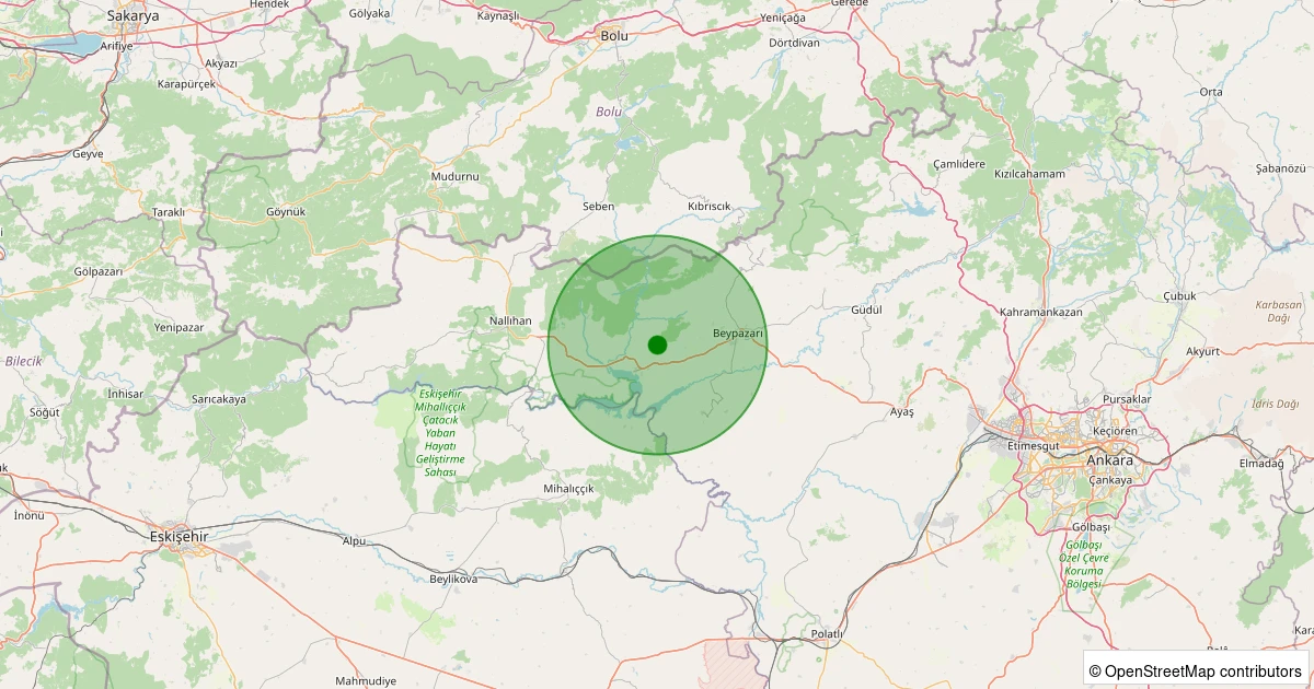Son 7 gün içinde Nallıhan - Uluköy noktasından 100 km yarıçap içerisinde meydana gelen diğer depremler:
