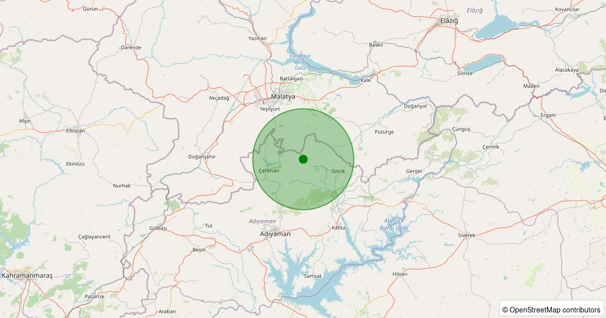 Son 7 gün içinde Çelikhan - İzci Köyü noktasından 100 km yarıçap içerisinde meydana gelen diğer depremler: