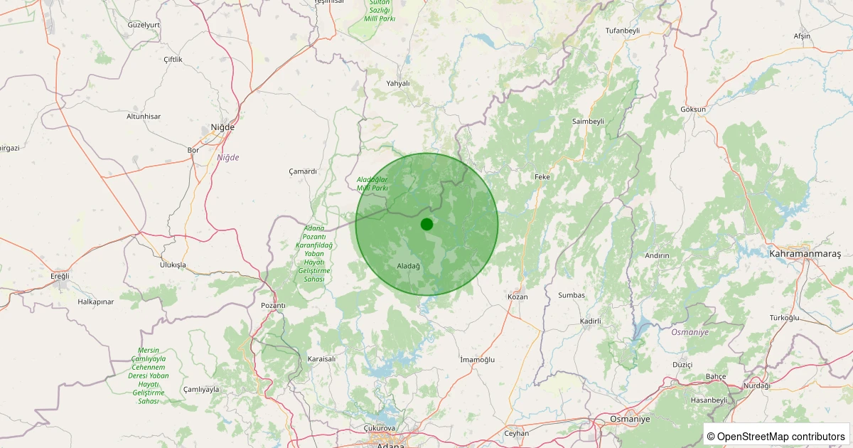 Son bir hafta içerisinde Adana şehri Aladağ - Küp noktasından 100 km yarıçap içerisinde toplamda 56 deprem kaydedilmiştir. Bu depremlerden en büyüğü 3.1 büyüklüğünde ve en sığ odaklısı 1.90 kilometre derinlikte gerçekleşmiştir.