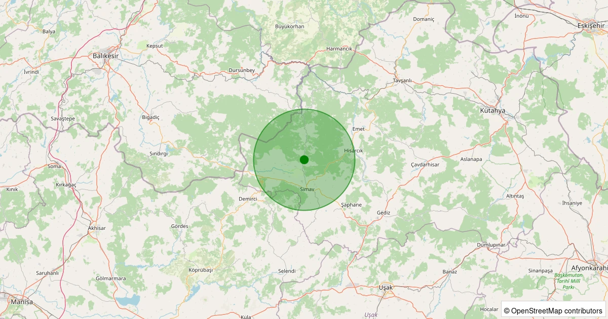 Son 7 gün içinde Simav - Hamzabey noktasından 100 km yarıçap içerisinde meydana gelen diğer depremler: