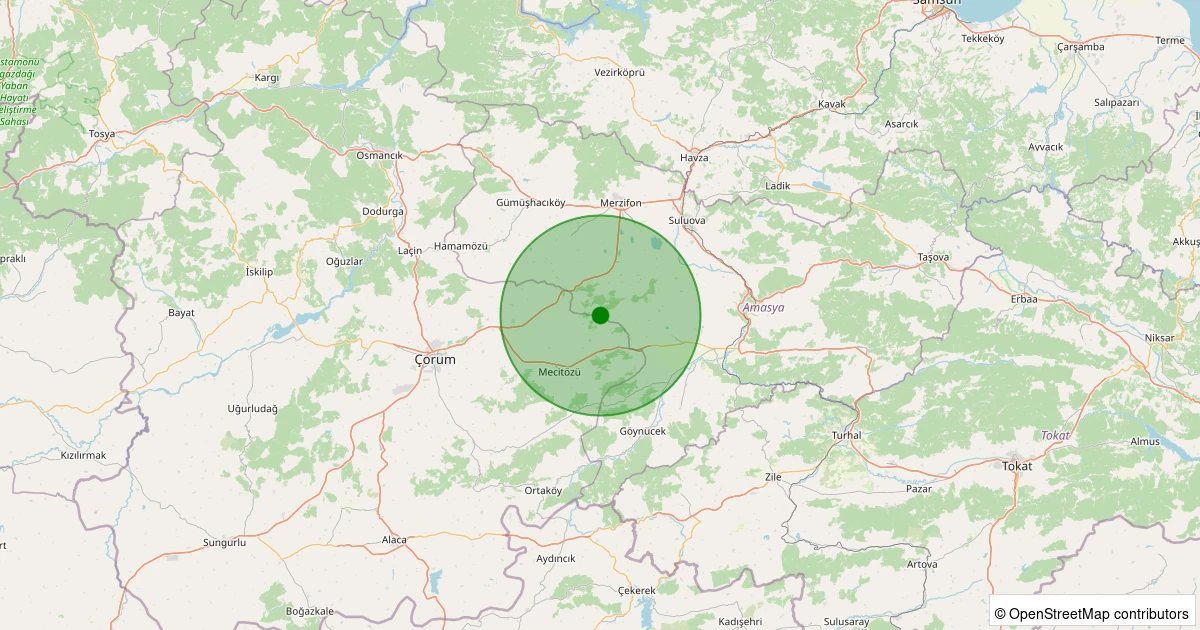 Son 7 gün içinde Mecitözü - Konaç Köyü noktasından 100 km yarıçap içerisinde meydana gelen diğer depremler:
