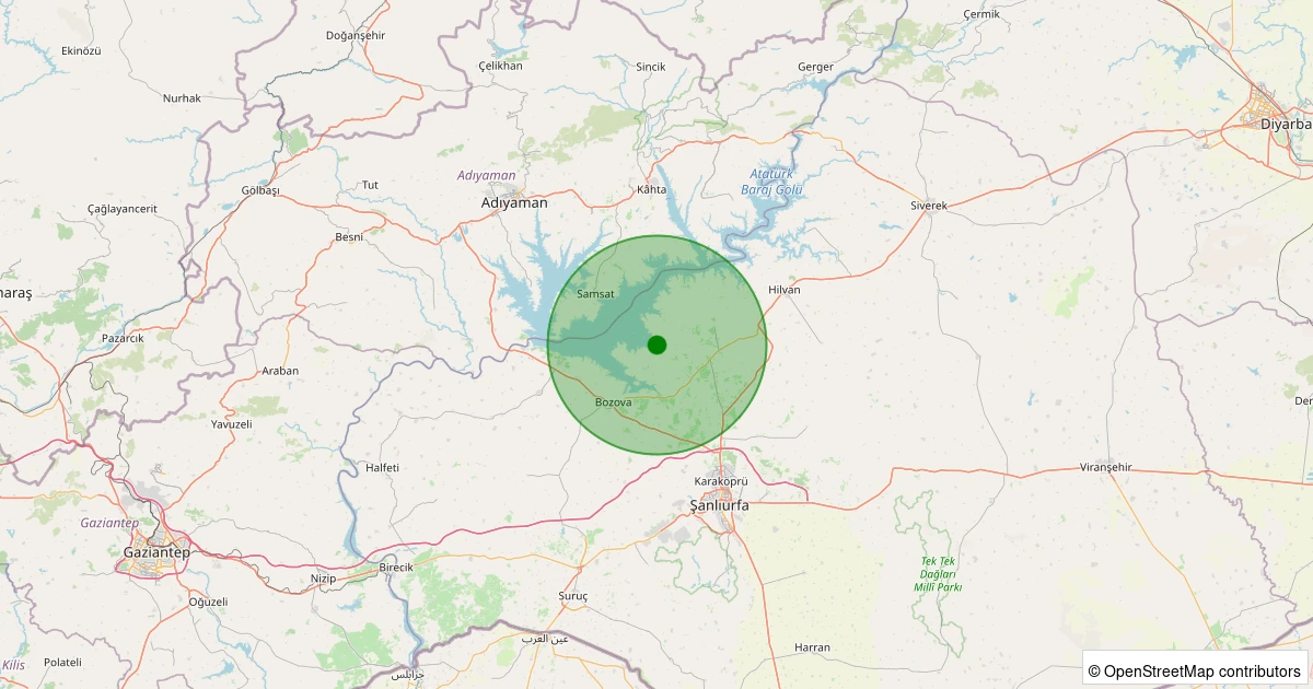 Son 7 gün içinde Hilvan - Kavalık noktasından 100 km yarıçap içerisinde meydana gelen diğer depremler: