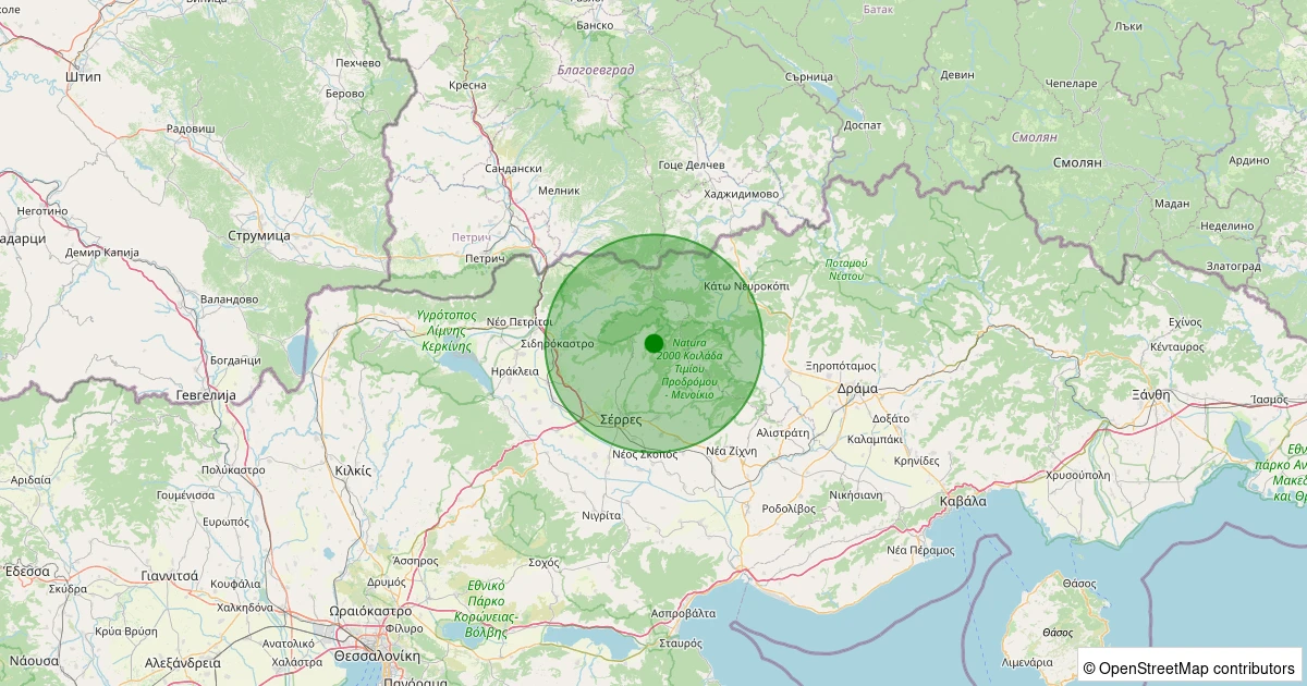 Son bir hafta içerisinde Serrai, Kentriki Makedonia (Yunanistan) noktasından 100 km yarıçap içerisinde toplamda 6 deprem kaydedilmiştir. Bu depremlerden en büyüğü 3.3 büyüklüğünde ve en sığ odaklısı 2.40 kilometre derinlikte gerçekleşmiştir.