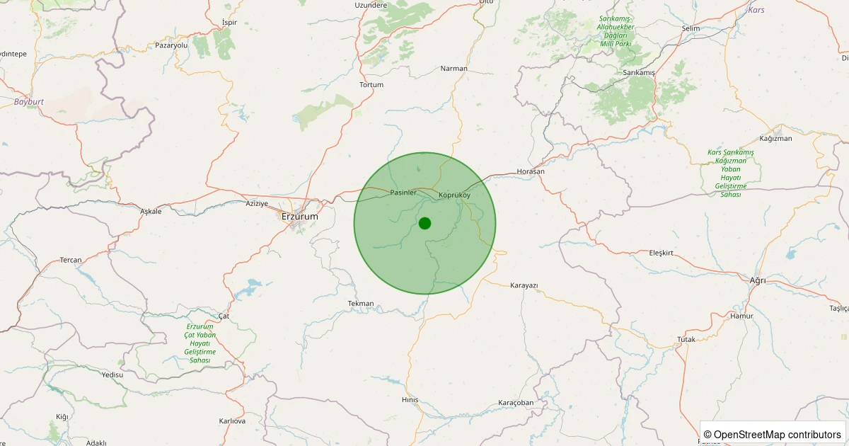 Son 7 gün içinde Pasinler - Yastıktepe noktasından 100 km yarıçap içerisinde meydana gelen diğer depremler: