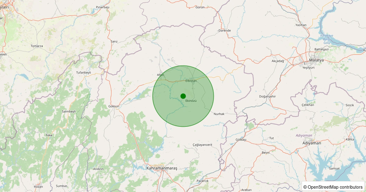 Son 7 gün içinde Ekinözü - Ortaören noktasından 100 km yarıçap içerisinde meydana gelen diğer depremler: