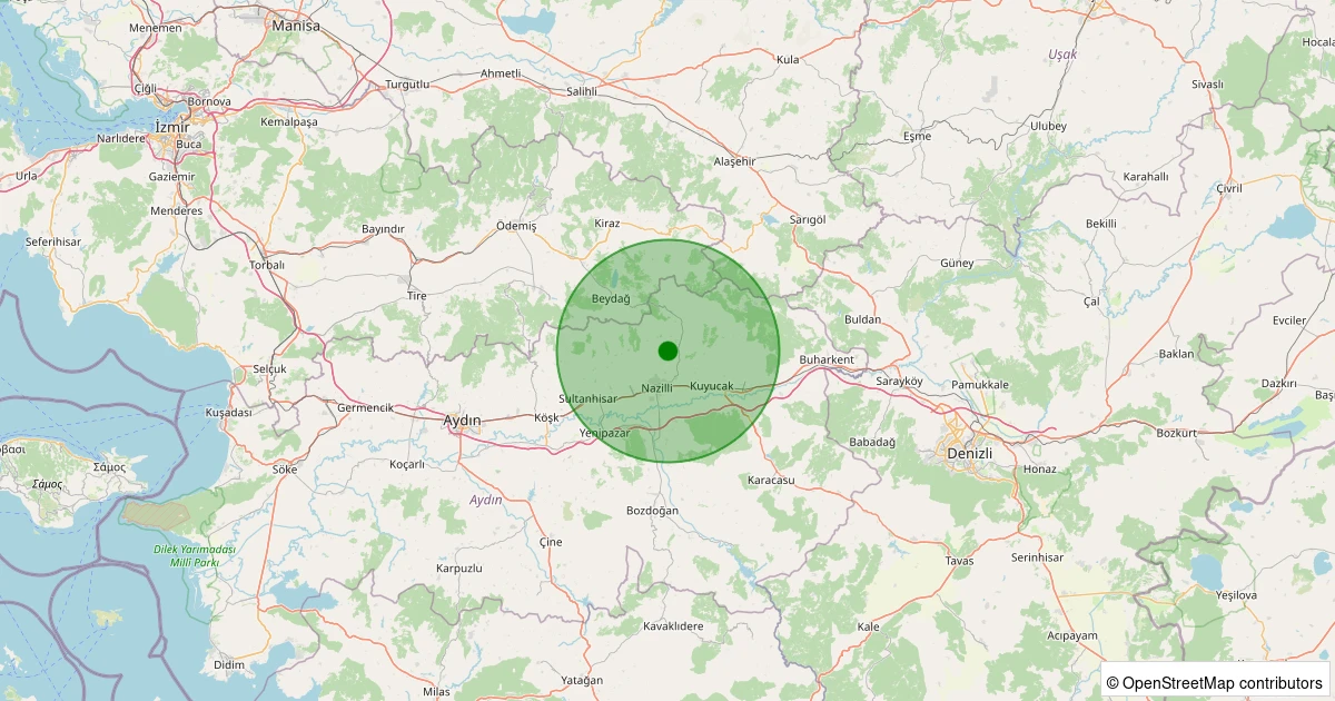 Son 7 gün içinde Nazilli - Şimşelli noktasından 100 km yarıçap içerisinde meydana gelen diğer depremler: