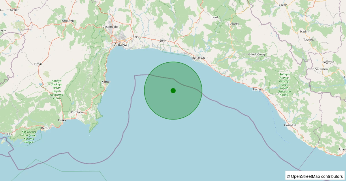 Son 7 gün içinde Akdeniz - Antalya Körfezi - [32.34 km] Manavgat (Antalya) noktasından 100 km yarıçap içerisinde meydana gelen diğer depremler:
