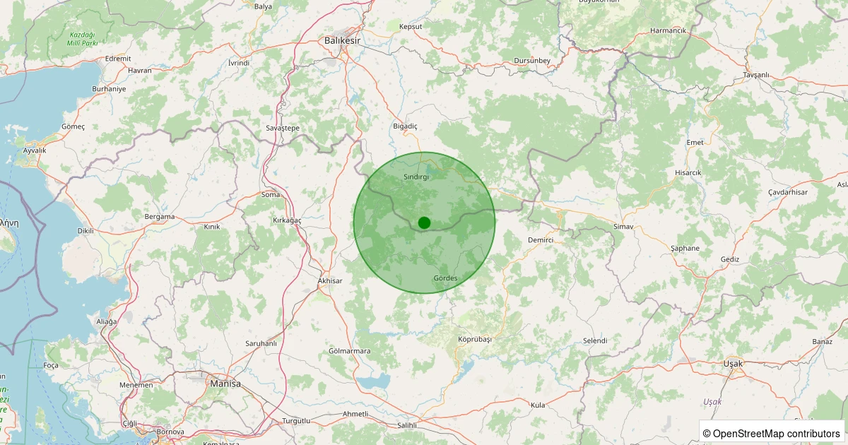 Son 7 gün içinde Sındırgı - Kınık noktasından 100 km yarıçap içerisinde meydana gelen diğer depremler:
