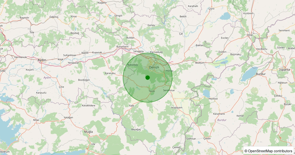 Son 7 gün içinde Merkezefendi - Yeşilköy noktasından 100 km yarıçap içerisinde meydana gelen diğer depremler: