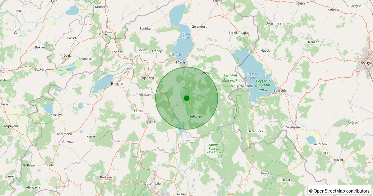 Son 7 gün içinde Eğirdir - Yuvalı Köyü noktasından 100 km yarıçap içerisinde meydana gelen diğer depremler: