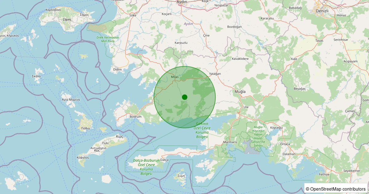 Son 7 gün içinde Milas - İkizköy noktasından 100 km yarıçap içerisinde meydana gelen diğer depremler: