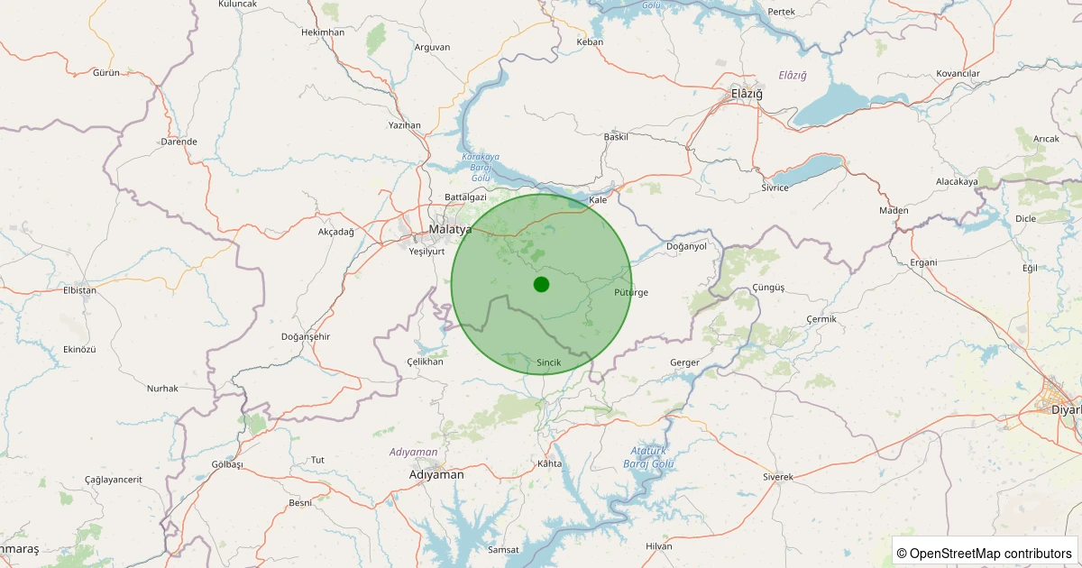 Son 7 gün içinde Battalgazi - Yaygın Köyü noktasından 100 km yarıçap içerisinde meydana gelen diğer depremler: