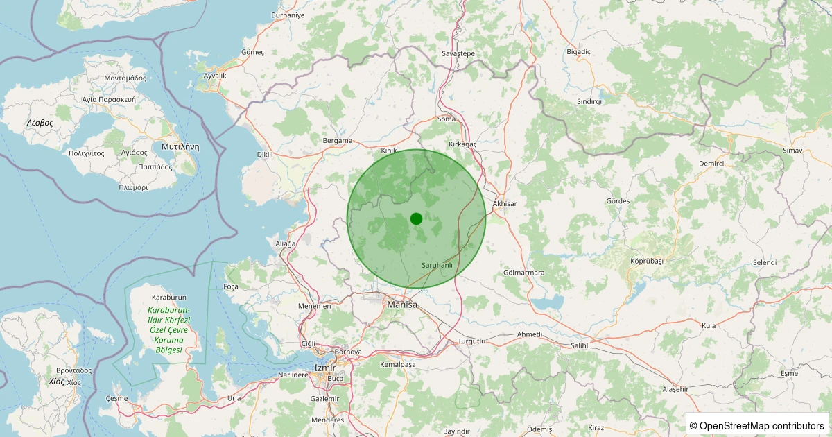 Son 7 gün içinde Saruhanlı - Hatipler noktasından 100 km yarıçap içerisinde meydana gelen diğer depremler: