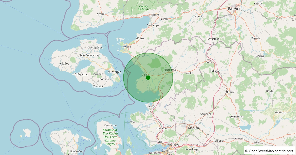 Son 7 gün içinde Dikili - Salimbey noktasından 100 km yarıçap içerisinde meydana gelen diğer depremler: