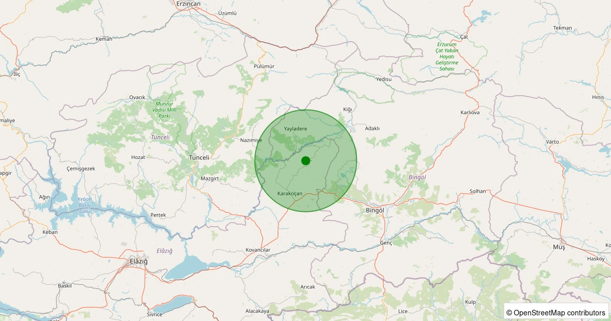 Son 7 gün içinde Karakoçan - Hamurkesen Köyü noktasından 100 km yarıçap içerisinde meydana gelen diğer depremler: