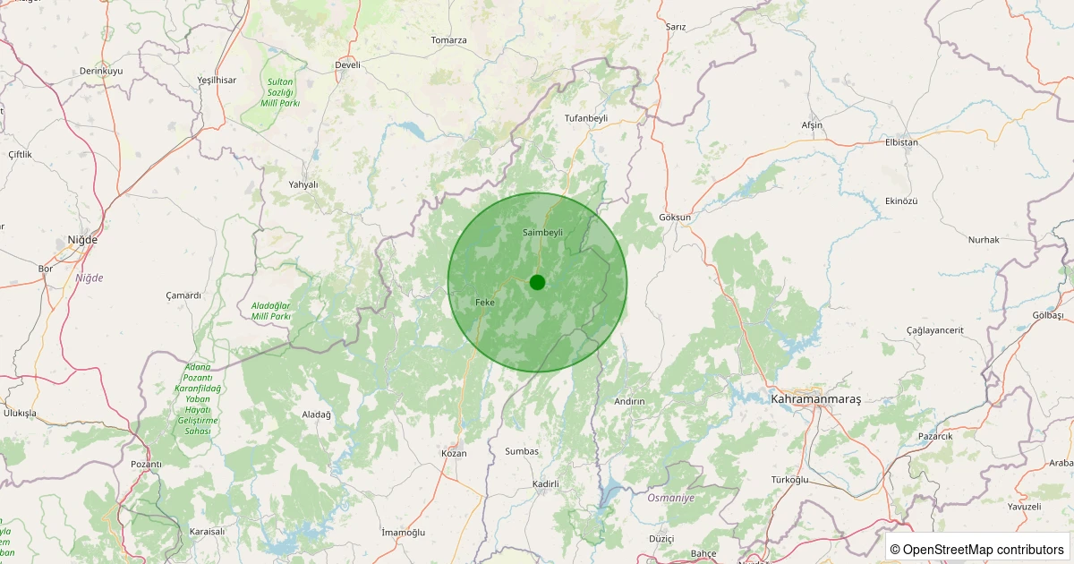 Son 7 gün içinde Saimbeyli noktasından 100 km yarıçap içerisinde meydana gelen diğer depremler: