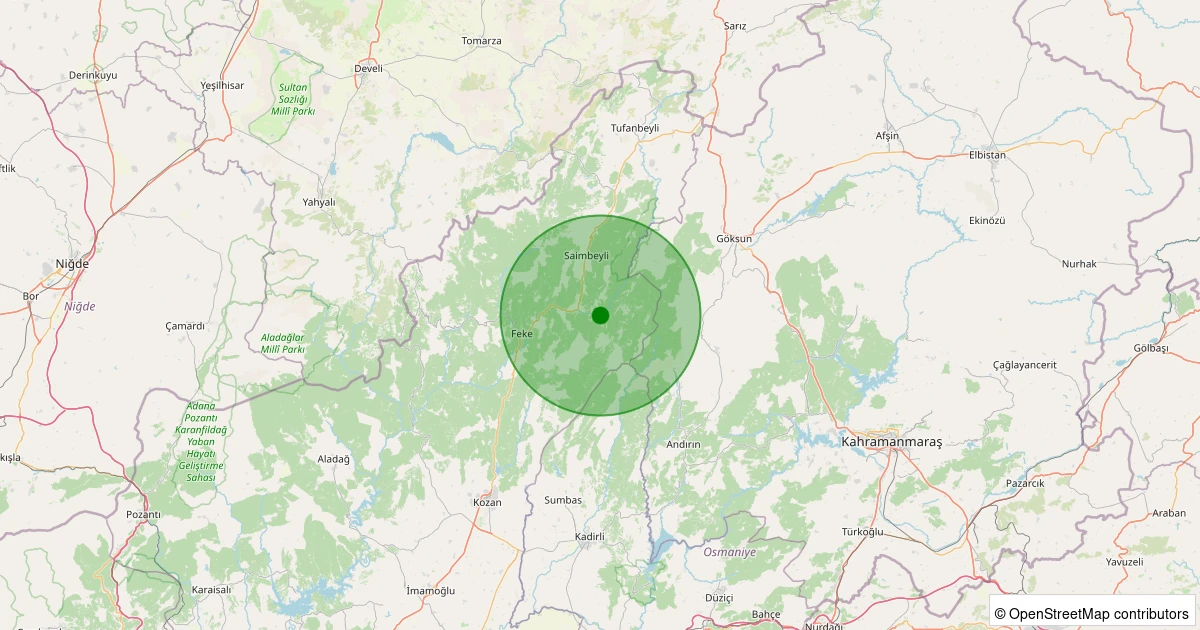 Son 7 gün içinde Saimbeyli - Yardibi noktasından 100 km yarıçap içerisinde meydana gelen diğer depremler:
