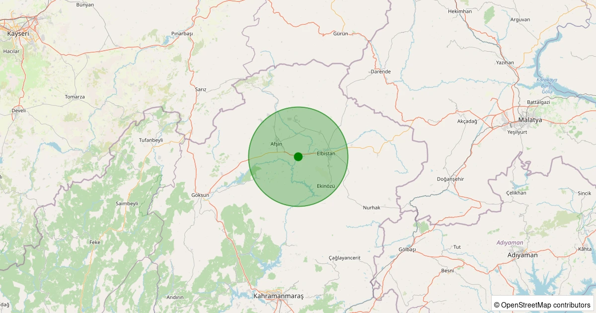 Son 7 gün içinde Afşin - Kabaağaç noktasından 100 km yarıçap içerisinde meydana gelen diğer depremler: