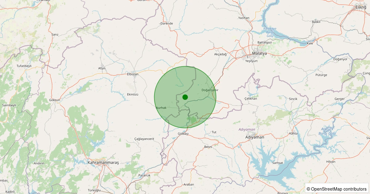 Son 7 gün içinde Doğanşehir - Beğre noktasından 100 km yarıçap içerisinde meydana gelen diğer depremler: