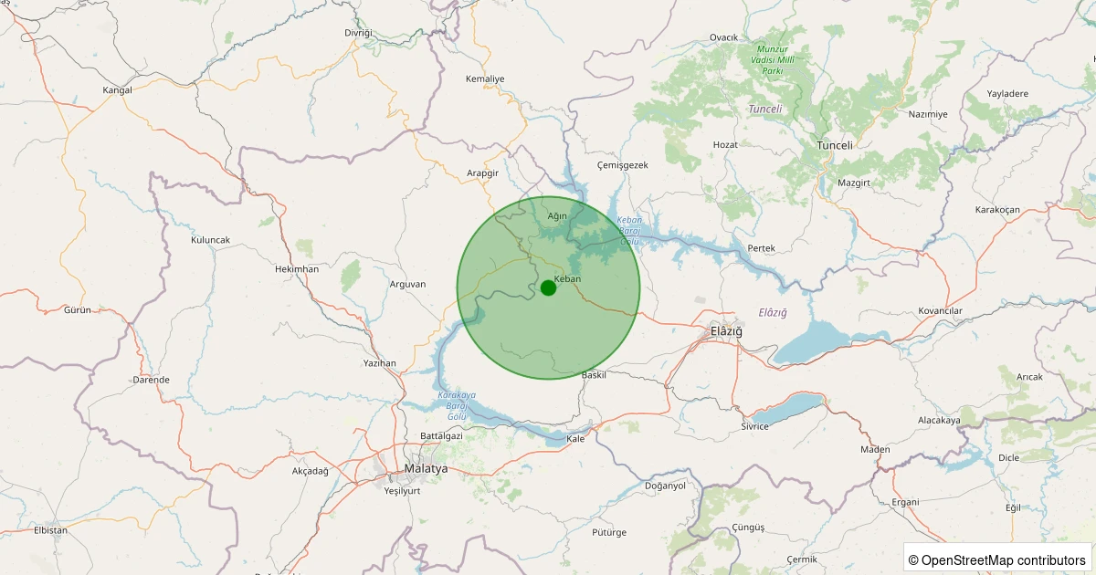 Son 7 gün içinde Keban - Nimri Köyü noktasından 100 km yarıçap içerisinde meydana gelen diğer depremler: