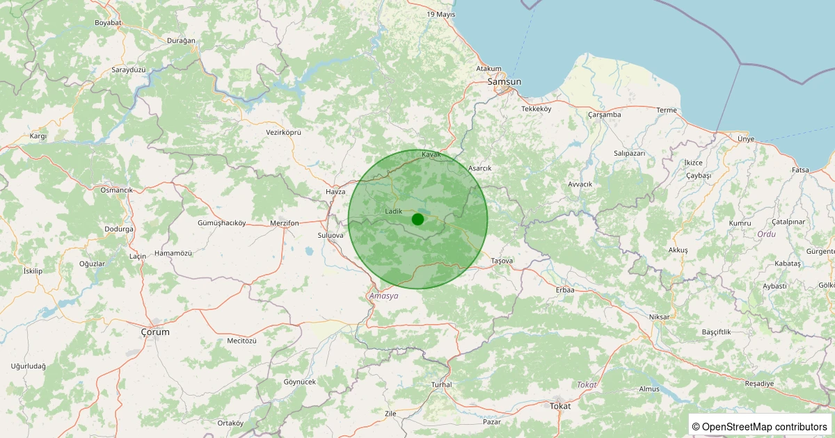 Son 7 gün içinde Ladik - Bolat noktasından 100 km yarıçap içerisinde meydana gelen diğer depremler:
